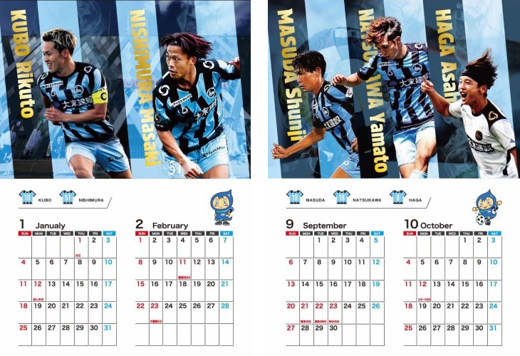 本カレンダーは、FC大阪に所属する選手たちの迫力あるプレーシーンやオフショット、